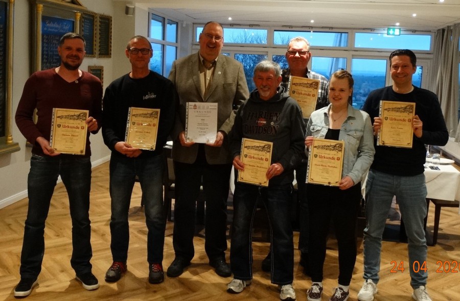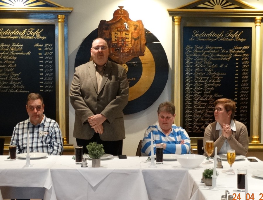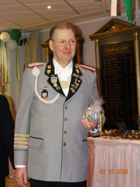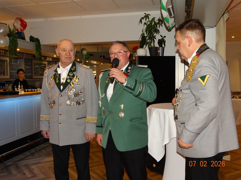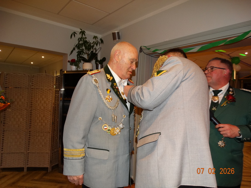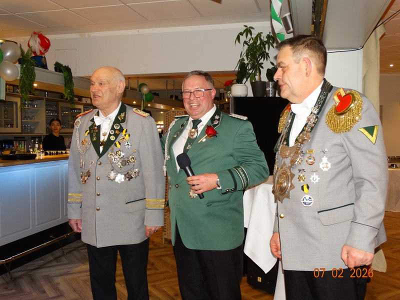 Am 23.01.2026 fand unsere diesjährige Generalversammlung statt.Vor der offiziellen Eröffnung wurde die frisch eingerahmte und angebrachte Urkunde des aktuellen Königs begutachtet und abgenommen ; - ) Nach der Eröffnung durch den 1. Vorsteher Jens Siemon, wurde das Protokoll der letzten Generalversammlung verlesen. Danach folgte der Kassenbericht und die Entlastung der Kasse durch die Kassenprüfer. Und es standen auch Neuwahlen des 1. Vorstehers und des Oberstabszahlmeisters an. Als 1. Vorsteher wurde Jens Siemon für die nächsten 3 Jahre in seinem Amt einstimmig wiedergewählt. Auch der Oberstabszahlmeister, Rainer Staneck wurde für die nächsten 3 Jahre einstimmig wiedergewählt. Natürlich gab es auch Ehrungen für lanjährige Mitglieder des NDSB.