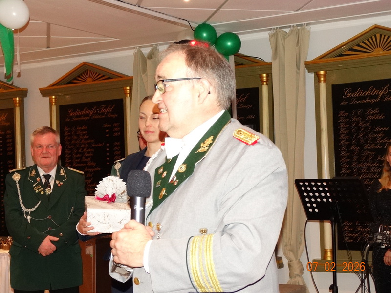 Am 27.01.2026 wurde die Einladung zum Königsball dem Bürgermeister und Patron der Lauenburger Schützengilde, Thorben Brackmann, offiziell im Schloss übergeben.